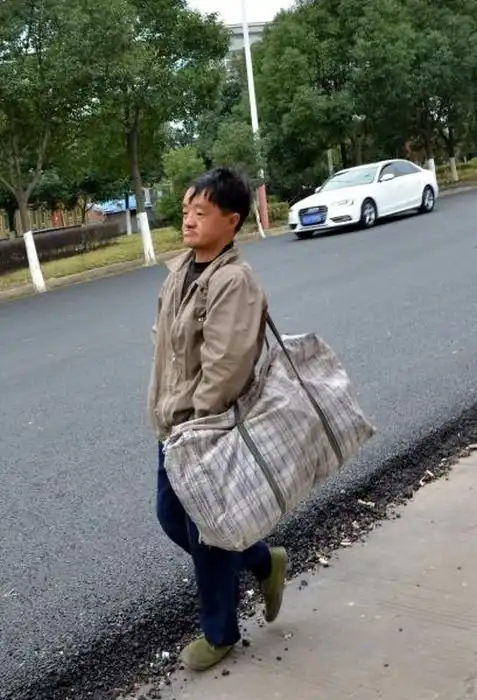 На улицах китайского города Венлинг, что находится в провинции Чжэцзян, этот мужчина просит милостыню, передвигаясь на небольшой тележке. В конце рабочего дня происходит чудесное исцеление, и бывший инвалид встает на ноги и терпеливо ждет автобус на остановке.