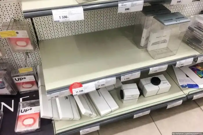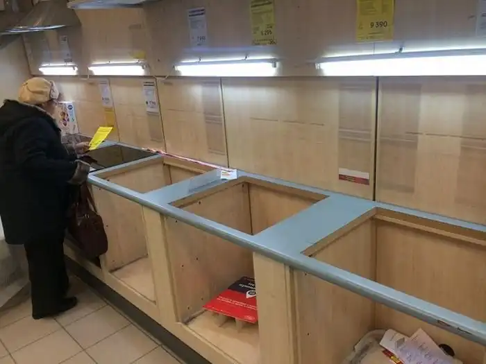 Несколько дней серьезного ажиотажа и дикого шопинга привели к тому, что полки во многих магазинах оказались полупустыми или пустыми. По старым рублевым ценам были скуплены практически все запасы электротехники, одежды и мебели. Сейчас в крупных городах таких больших очередей уже нет, и нет их из-за того, что уже нечего больше покупать.