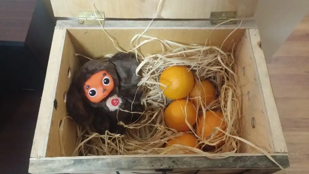 Прислали сегодня, коробка была полна апельсинов, но сотрудники были голодные) Все ели апельсины и слушали одну из любимых песен детства ))