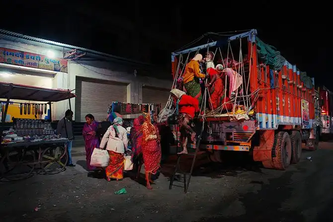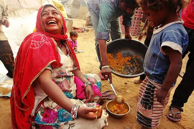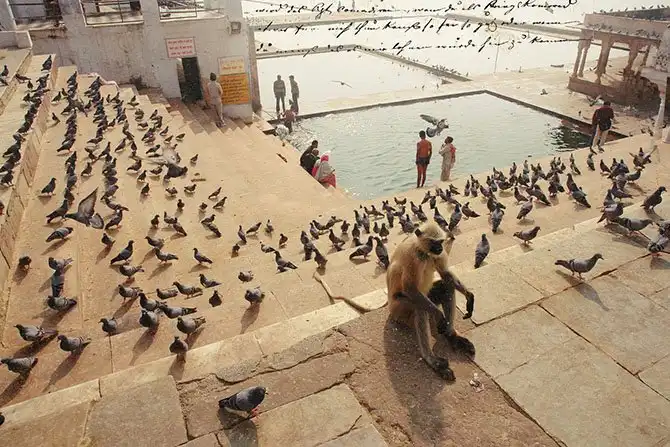На Пушкар спускалась ночь. Так как мы в горах, холодает быстро. Люди грелись у придорожных костров. Обезьяны, обитающие на гатах вокруг озера, заворачивались в свои одеяла и отходили ко сну. Уютной картиной вырисовывалось где-то это время на окраине города, среди цыганских костров. Из кузова притормозившего грузовика выползло 43 старушки. В принципе, их можно было пересчитать вместо барашков на ночь.