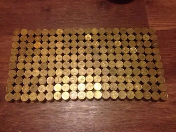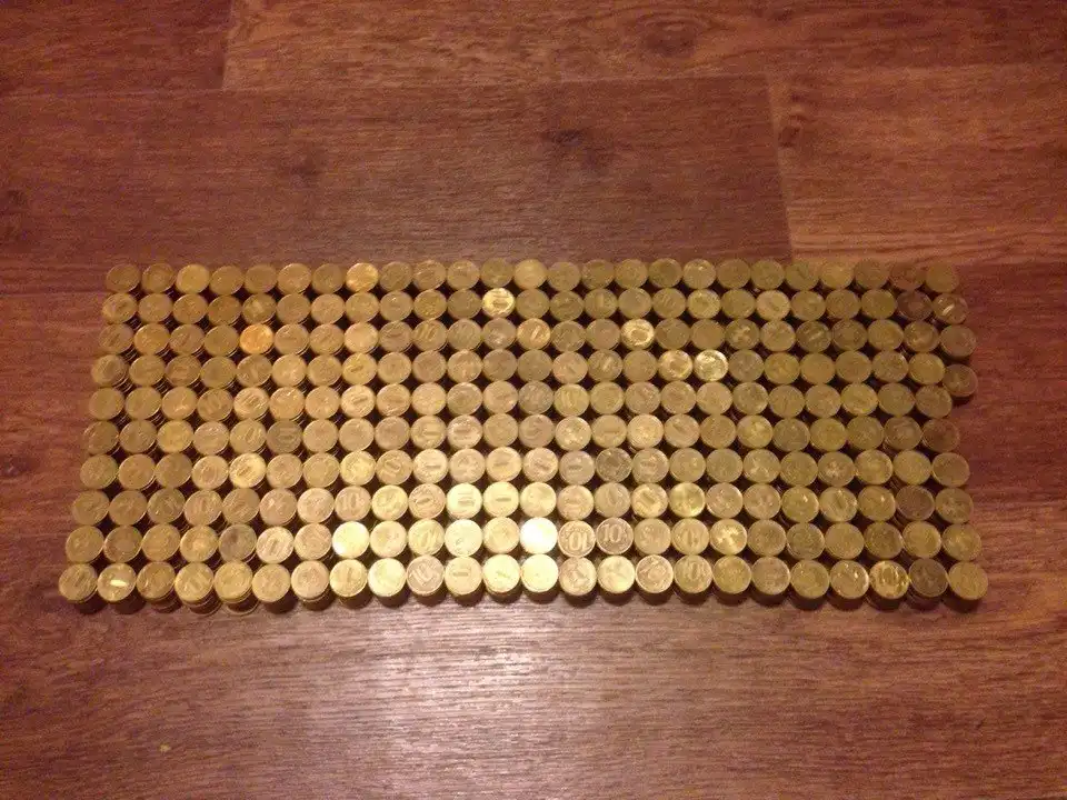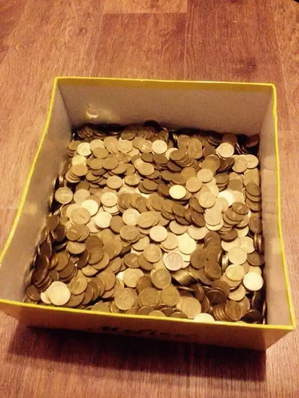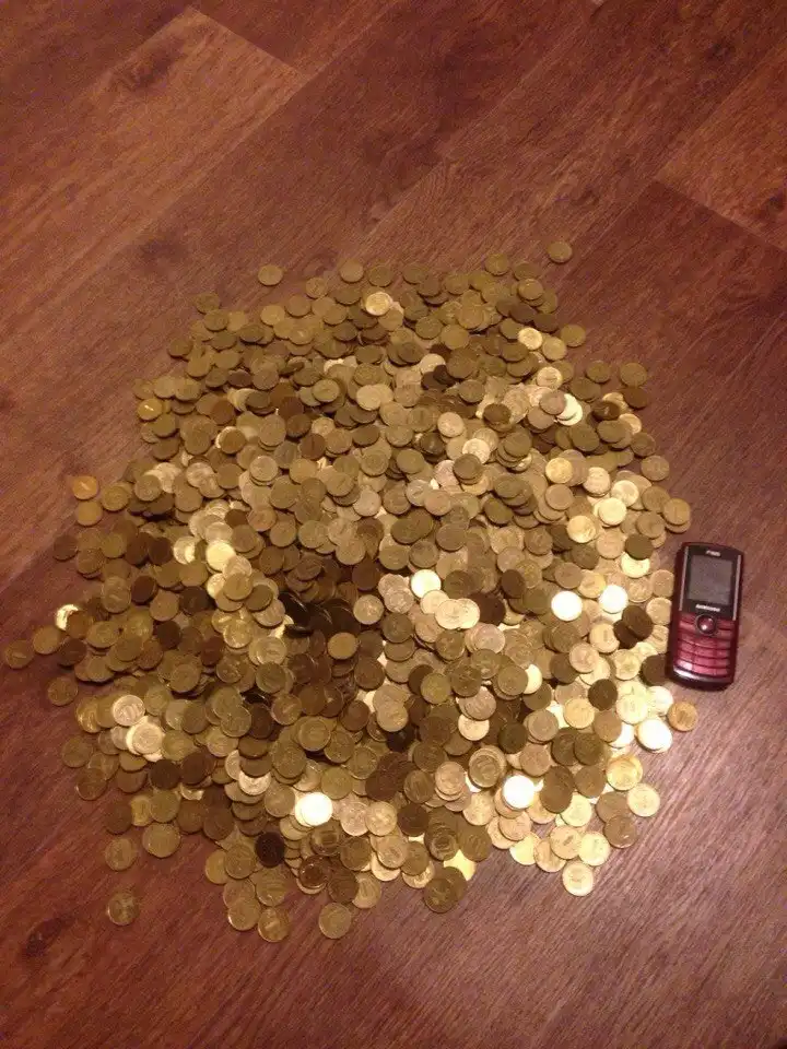 Решил как-то я начать копить десятки, взял большую бутыль 15 литров сделал отверстие и понеслась, возвращаясь каждый день с работы на протяжении года я бросал мелочь в банку до поры до времени, пока в один прекрасный момент банка не выдержала напряжения и лопнула естественно всё содержимое рассыпалось, для временной копилки я достал коробку из под обуви и высыпал деньги в неё, после решил пересчитать сколько же я успел накопить.