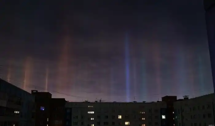 В Рождество столичное небо украсили светящиеся столбы. Этот феномен ученые объясняют отражением лучей солнца очень мелкими кристаллами льда, которые при сильном морозе образуются в нижних слоях атмосферы. Пока столбики термометров в Москве опускаются ниже -20, москвичи активно публикуют фото необычного свечения в небе в социальных сетях.