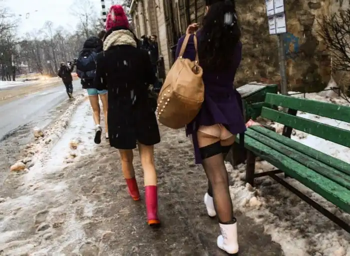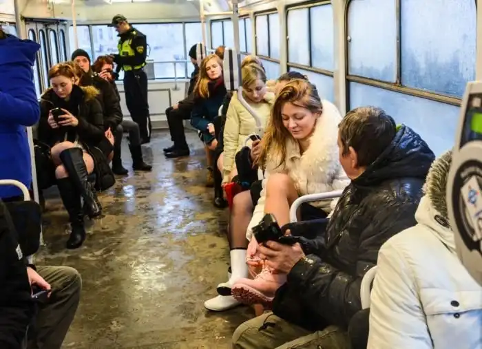 С 2012 года по инициативе движения Improv Everywhere проводится акция The No Pants Subway Ride, участники и участницы которой без штанов и юбок совершают поездки на общественном транспорте. Впервые подобная акция прошла в Нью-Йорке и быстро стала набирать популярность. В этом году данные акции должны пройти в 60 городах мира. Основная идея акции - весело провести время. Инициаторы заявляют, что это «способ весело провести время как для участников, так и для тех, кто нас увидит».