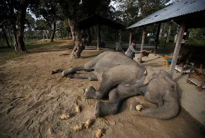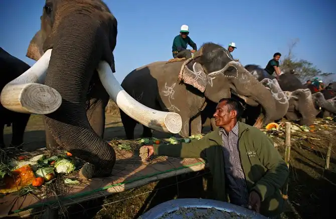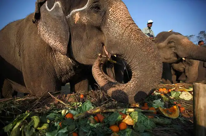 А заканчивается фестиваль слонов в Непале, как и у людей, роскошным банкетом.