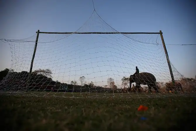На поле размером с футбольную площадку и со стандартными футбольными воротами слоны продемонстрировали, что тоже умеют играть в популярную во всем мире игру.