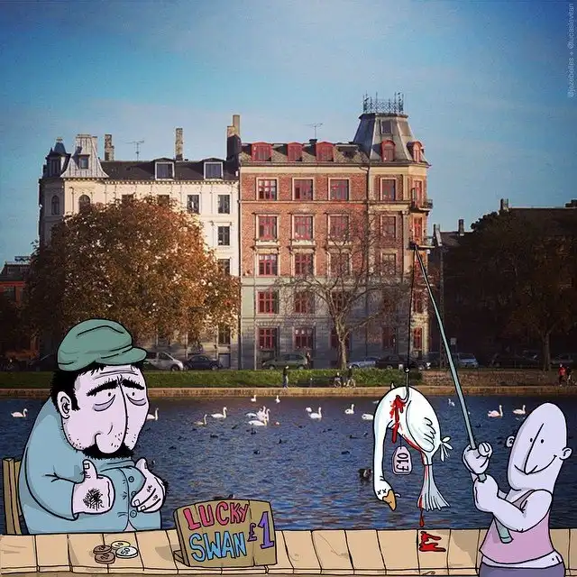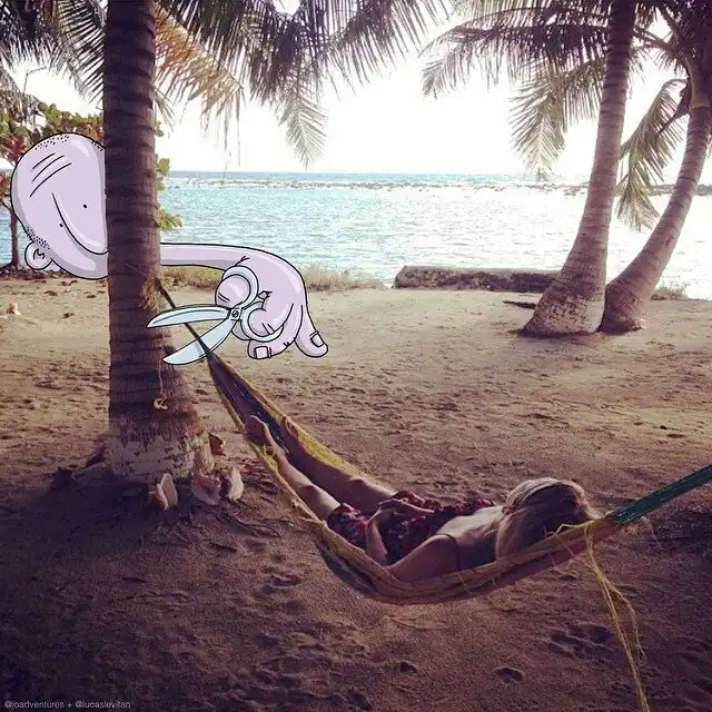 Проект лондонского художника бразильского происхождения Лукаса Левитана (Lucas Levitan) Photo Invasion появился случайно. По словам художника, сначала он дорисовывал собственные фотографии в Instagram. Неожиданно другие пользователи начали предлагать “доработать” и свои фотки. “О, это проект, который я хотел бы продолжать”, – подумал иллюстратор и серьезно взялся за дело.