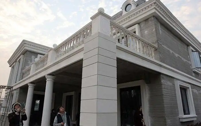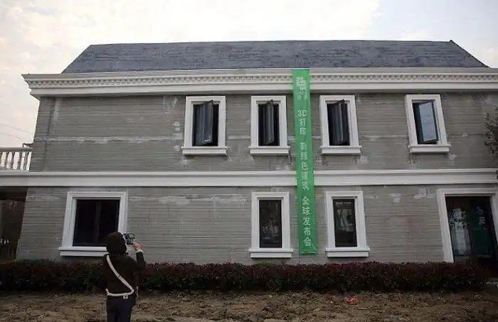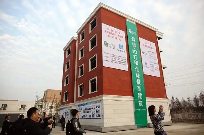 В китайской провинции Цзянсу в промышленном парке открылась выставка новых домов, которые были созданы при помощи 3D-принтера. Дома напечатаны на огромном принтере, высота которого превышает 6 метров. Посетителям парка представлены дома, имеющие различный дизайн, самый высокий из которых насчитывает 5 этажей.