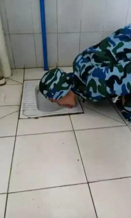 Весьма необычный инцидент произошел в одном техническом учебном заведении провинции Сычуань, Китай. В комнату кадетов вошел сержант Чай Пенг, чтобы проверить качество уборки. Ему не понравилось, как была проведена уборка туалета, в результате чего старший по званию начал отчитывать кадетов. Доказать чистоту туалета кадет по имени Хо Лиао решил весьма необычным способом, он лично вылизал пол и унитаз.