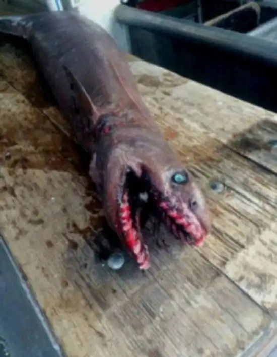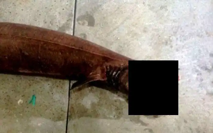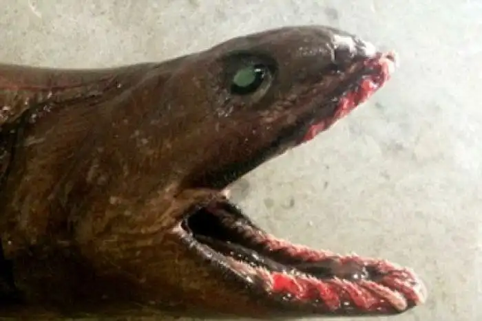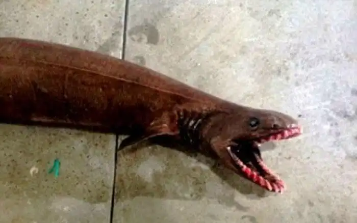Близ юго-восточного побережья Австралии в сети местных рыбаков попал совершенно уникальный улов – плащеносная акула. Подобная хищная рыба, похожая на змею и угря, жила около 80 миллионов лет назад, а данная особь практически ничем не отличается от своих предков.