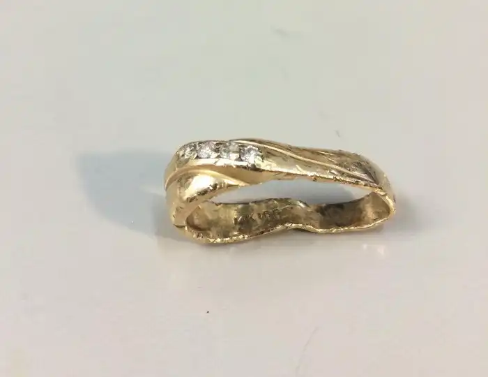 Искореженный предмет, который вы видите на своем экране, - это обручальное кольцо, случайно оказавшееся в измельчителе мусора. Казалось бы, теперь оно никогда не обретет свой прежний вид, однако, умелые руки мастера смогли восстановить кольцо, сделав его точно таким, каким оно было в день бракосочетания.