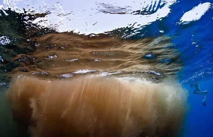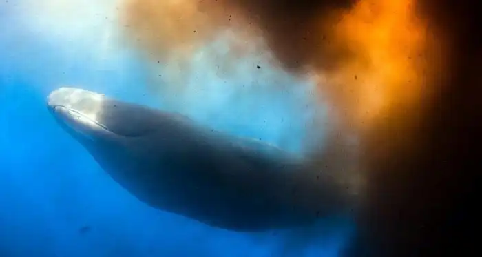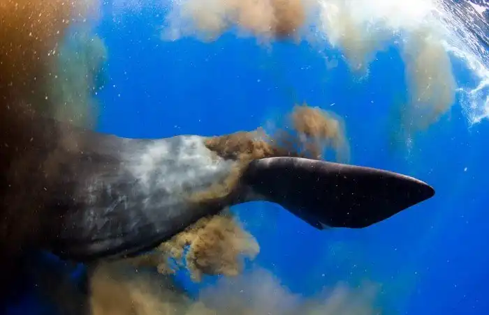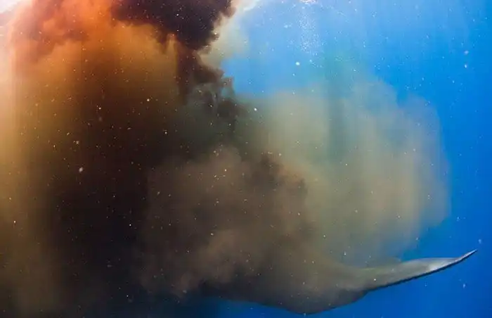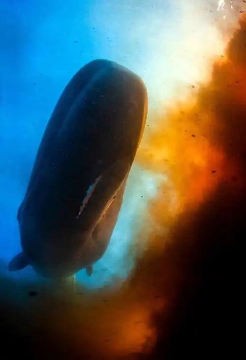 анадский фотограф Кери Вилк (Keri Wilk) сделал редкие снимки у побережья островного государства Доминика. Группа дайверов погрузилась под воду, чтобы понаблюдать за кашалотом, но неожиданно оказалась окружена фекалиями морского млекопитающего.