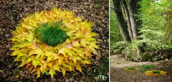 Художник использует натуральные материалы, чтобы создать различные виды Лэнд-арт инсталляций. Каждая часть его искусства медленно растворяется обратно в природу и исчезает.