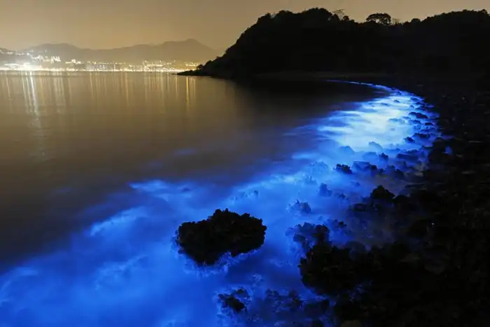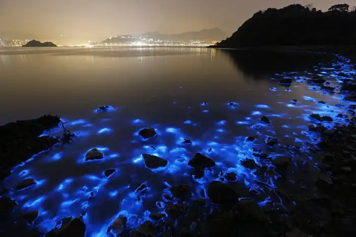 В ночь на 22 января жители Гонконга могли наблюдать удивительное природное явление на побережье. Во время ночного прилива воды Южно-Китайского моря у побережья светились приятным синим цветом. Это связано с деятельностью планктона. Подобный цвет воде придали крошечные микроорганизмы ночесветки, которые светятся в момент раздражения. По словам ученых, ночесветки светились из-за контакта с химическими веществами сельскохозяйственных удобрений, попавшими после дождей в воду.