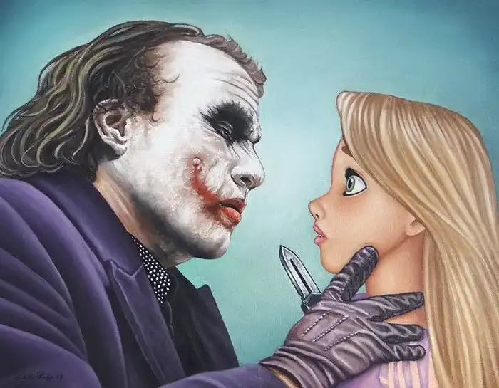 Художник Родольфо Лоаиза Онтиверос (Rodolfo Loaiza Ontiveros) создал серию работ, на которых диснеевские принцессы сталкиваются с главными злодеями из фильмов. Здесь мы видим и Джокера, и Фредди Крюгера, и даже Женщину-Кошку.