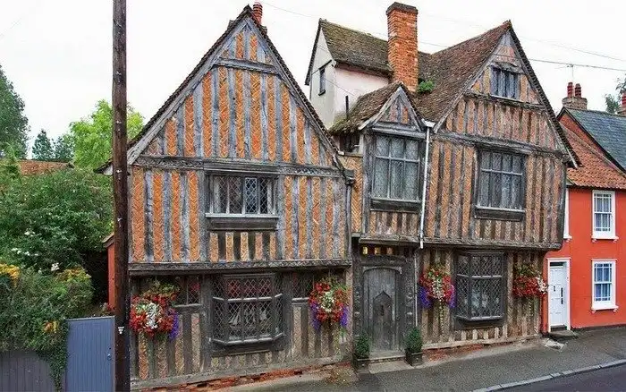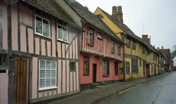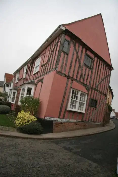 В средние века жители Лавенхэма, считавшегося по тем меркам городом, торговали шерстью и сукном, а также изделиями из этих материалов. Город был довольно богатым и быстро развивался. Людям требовалось жилье и поэтому фахверковые дома строили в спешке, да еще и из влажной древесины. Не удивительно, что через время материалы деформировались и многие дома стали кривыми, наклонившись на один бок. К этому времени город обанкротился, а у его жителей даже не было денег на ремонт своего жилья, поэтому дома так и остались кривыми.