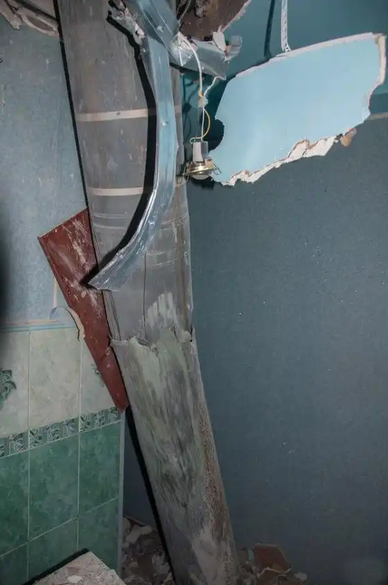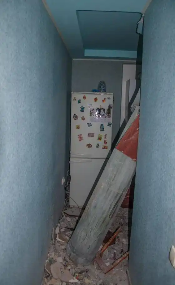 Жители украинского города Стаханов обнаружили в своем доме ракету РСЗО «Смерч». К счастью, снаряд не разорвался, иначе фотографировать здесь было бы нечего.