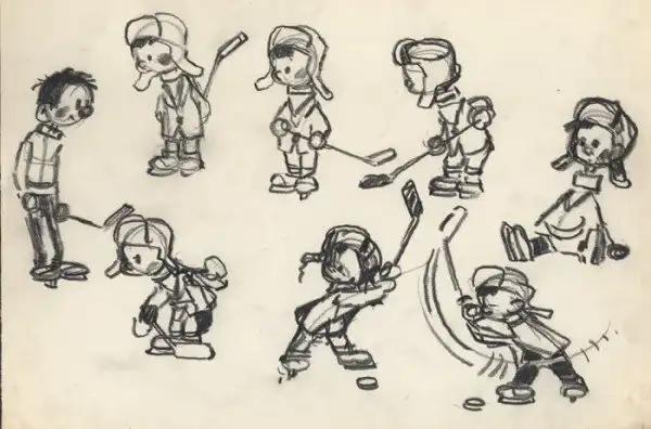 Материалы создания мультипликационных фильмов: "Шайбу! Шайбу!" (1964 год) и "Матч-реванш" (1968 год) из серии мультфильмов о спорте режиссера и сценариста Б. П. Дежкина (1914-1992) — советского режиссёра-мультипликатора, художника и сценариста. Это эскизы к мультфильмам; документы, отражающие процесс работы.
