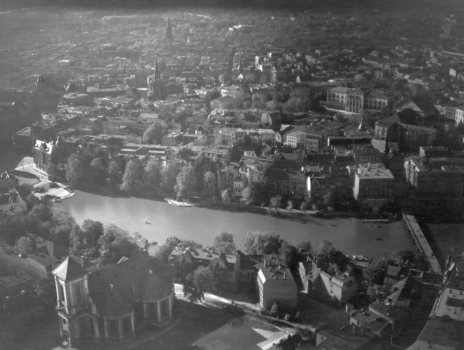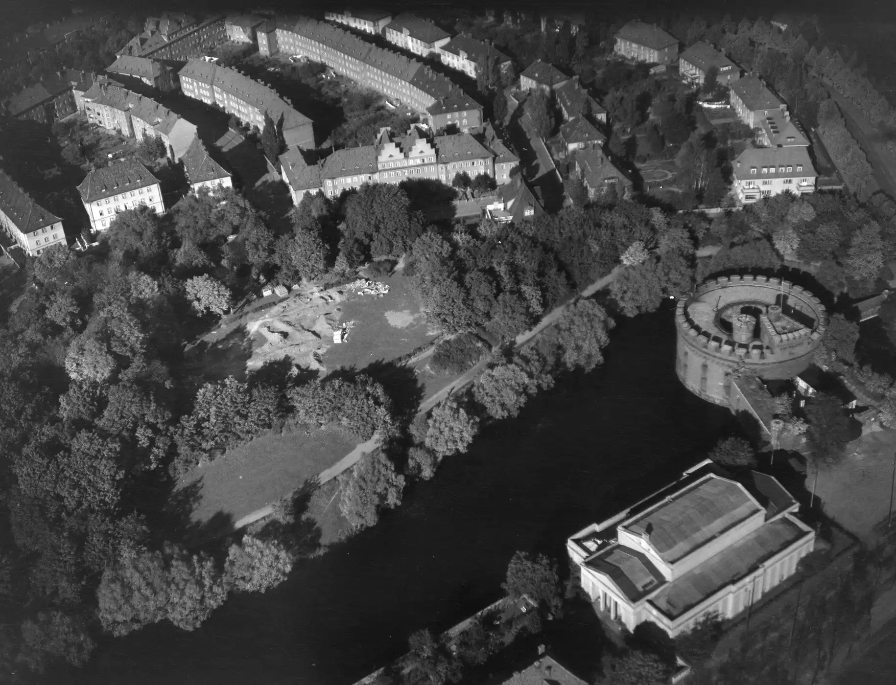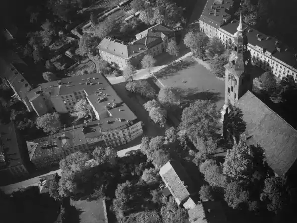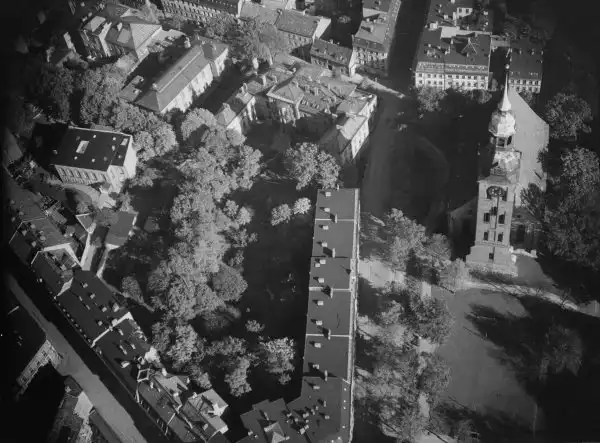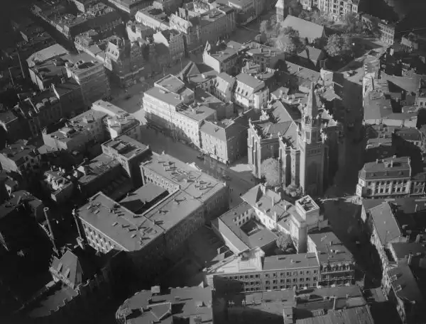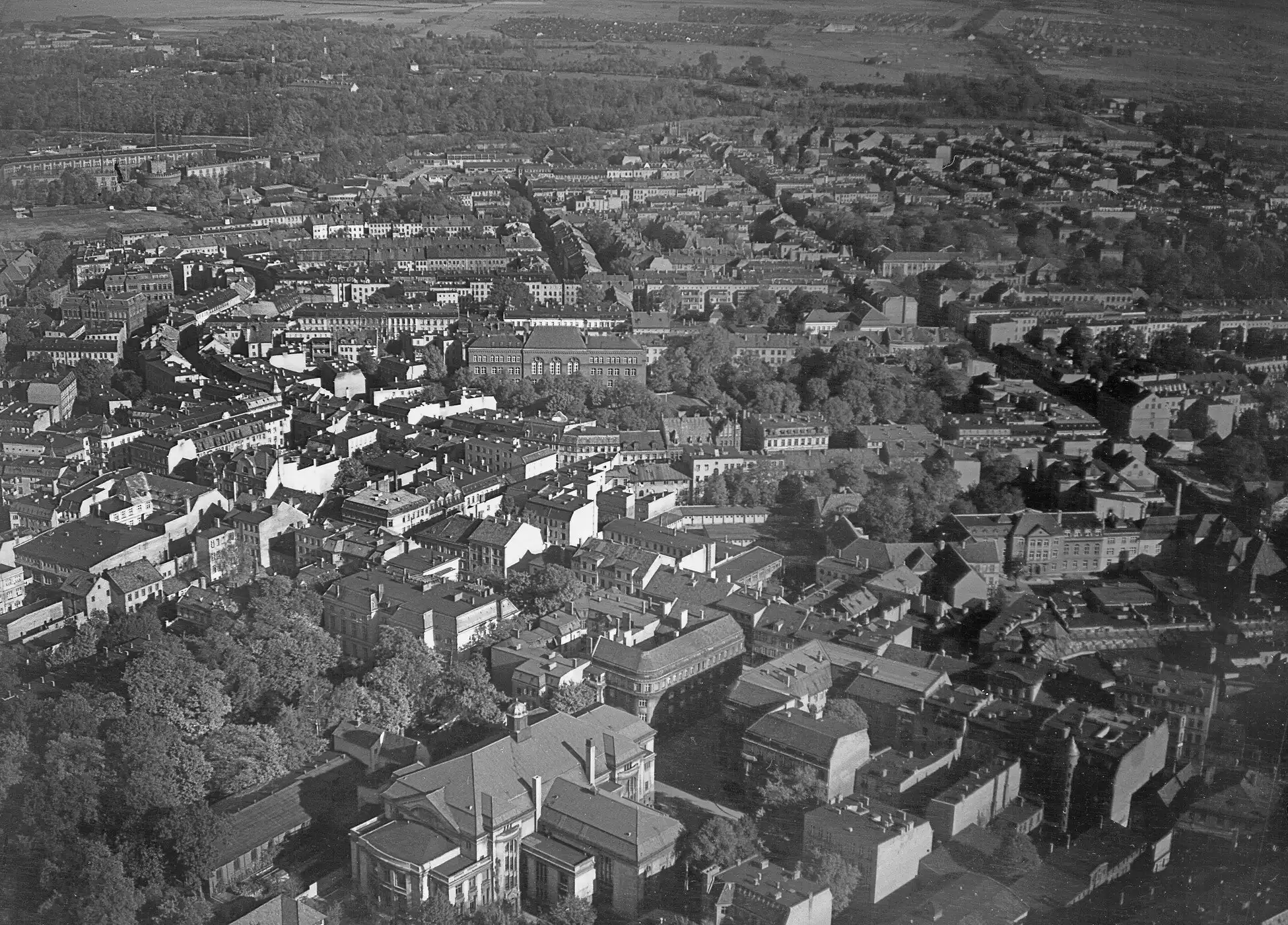 В 1944 году Кёнигсберг интенсивно бомбился Британскими Королевскими военно-воздушными силами. После этого город горел в течение нескольких дней. Первая бомбардировка была проведена в ночь на 27 августа 1944 года 5-й Группой ВВС Великобритании в составе 174-х бомбардировщиков Ланкастер. Аэродромы, с которых взлетели бомбардировщики, находились на расстоянии полутора тысяч километров от объекта. Первый налёт не был особенно успешен, большинство бомб, упали на восточную сторону города. Было сбиты четыре самолета. Через три дня, в ночь на 30 августа 1944 года в воздух поднялись 189 Ланкастеров 5-й Группы ВВС. Они сбросили 480 тонн бомб на центр города. Немецкие истребители сбили 15 бомбардировщиков[2].
