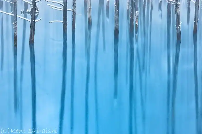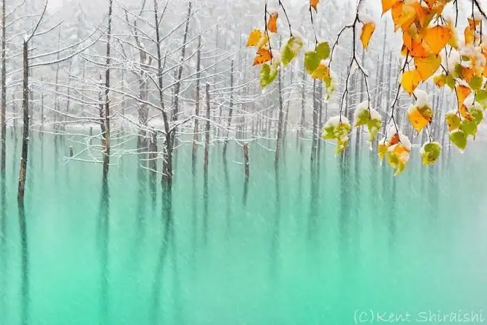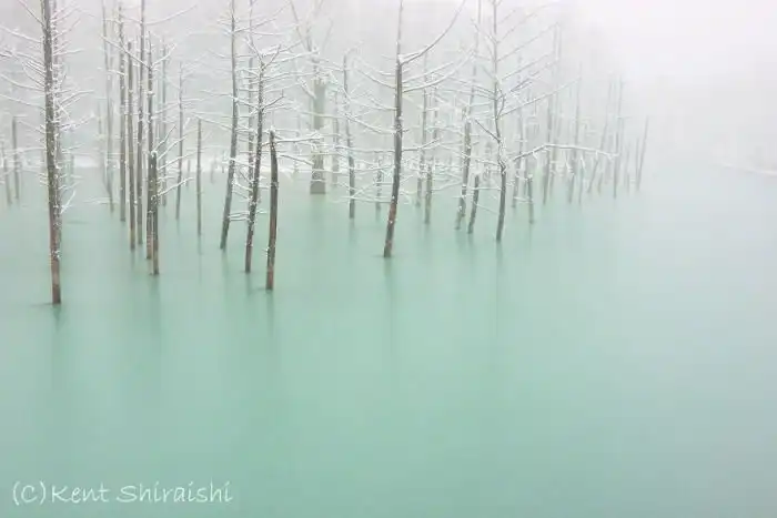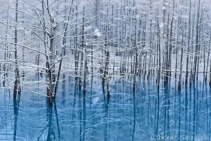 На японском острове Хоккайдо близ города Бией находится уникальный голубой пруд, который стал одной из местных достопримечательностей. Этот искусственный водоем появился после строительства дамбы, чтобы защитить данный район от вулкана, находящегося поблизости. Из-за большого количества гидроксида алюминия вода пруда имеет синий оттенок, однако цвет водоема меняется от времени года, времени суток и даже от угла обзора. Предлагаем вам взглянуть на фото пруда, которые сделал фотограф Кент Шираиши (Kent Shiraishi), считающий этот пруд самым красивым местом на земле.