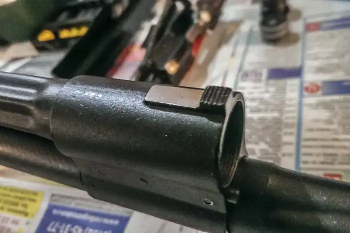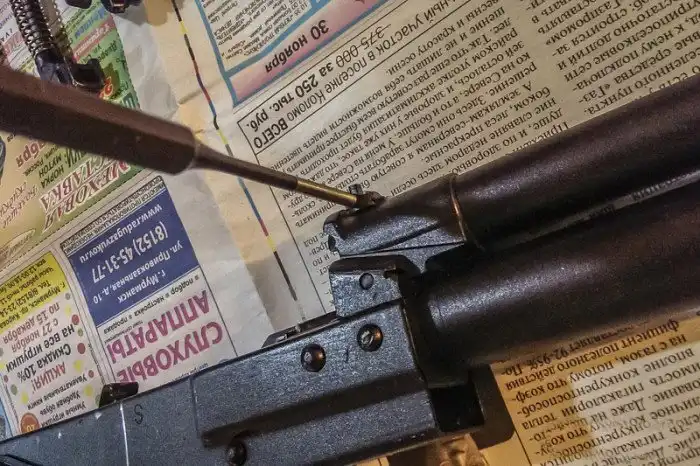 Далее необходимо установить новый прицельный механизм, удалив при этом старые прицельные приспособления