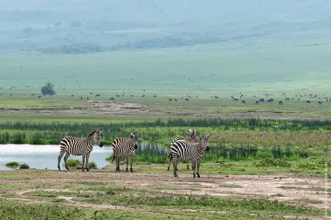 Когда мы подъехали к кромке кратера Нгоронгоро, то от восторга просто матерились минут пять. Даже те, кто ехал в Танзанию ради Занзибара. Масштаб титанического кратера поражал! Мы сделали несколько памятных фото и уехали в отель ночевать. Целый день мы провели в этом чудесном месте. Лично для меня это было кульминацией поездки. Потом уже впечатления шли по ниспадающей. Но не значит, что было совсем скучно.