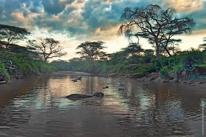 Как и многие (хочется верить, что я не одинок) мальчишки моего детства, я любил смотреть телепрограмму «В мире животных». В одной из передач показывали фильм BBC о Серенгети и Нгоронгоро. Я пытался найти этот фильм в сети, да, видно, не судьба. Совершенно не помню содержание фильма. Помню только финальные кадры, где стадо бегемотов ранним утром забегает в озеро и голос Николая Николаевича: «Бегемоты возвращаются в родную стихию».