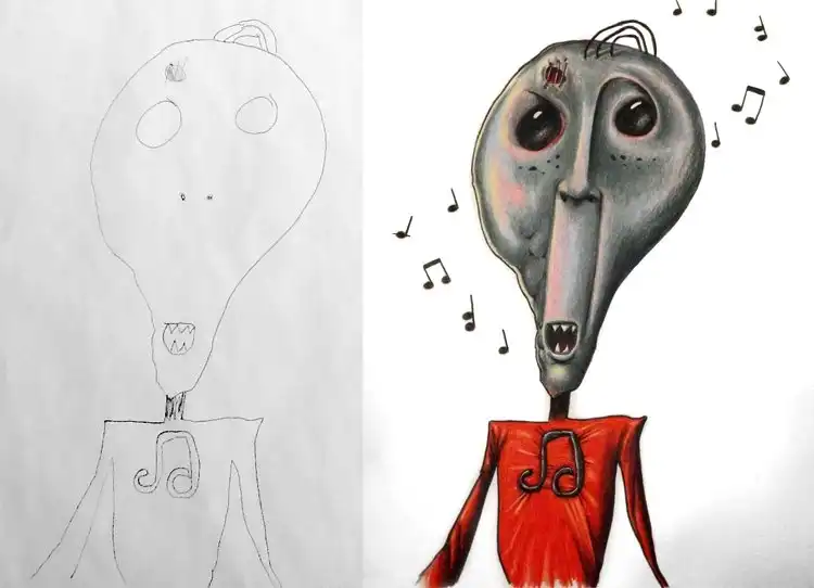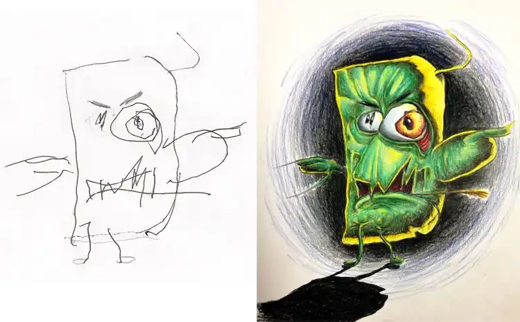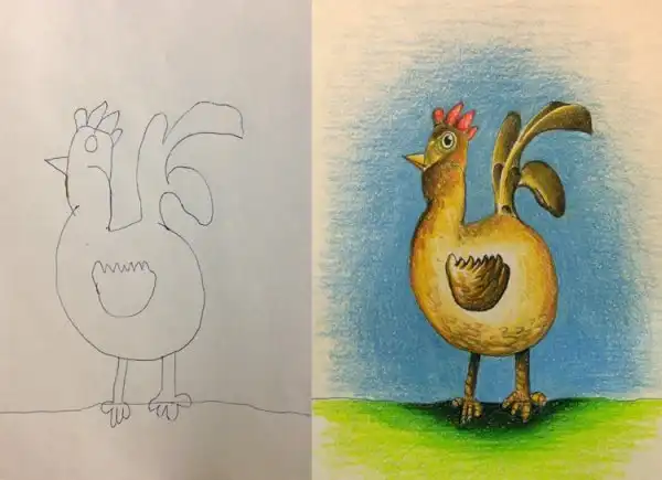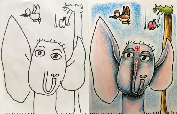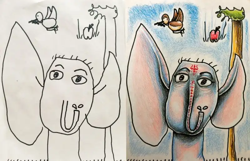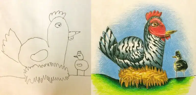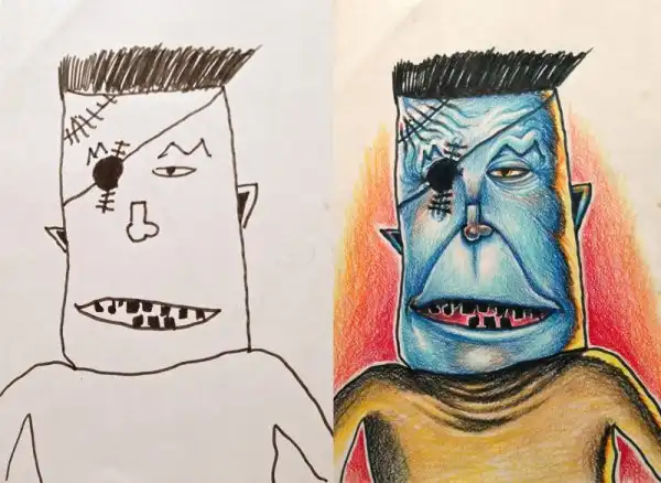 Семейное творчество: папа раскрашивает рисунки детей