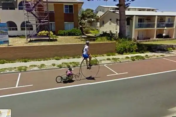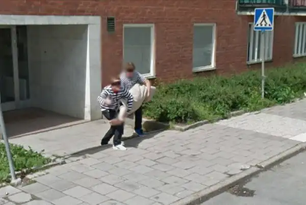 За неполные восемь лет существования камер Google Street View, позволяющих изучать онлайн панорамные виды улиц многих городов мира, видеоустройствами было запечатлено так много необычных кадров и ситуаций, что не поделиться ими становится уже просто неприличным. Фото не слишком четкие, и невозможно понять, где именно они сняты, но зато каждый из снимков повествует о собственной странной, вызывающей уйму вопросов истории.