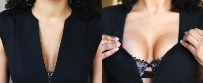 Предлагаем вашему вниманию еще один совет для девушек, который позволит визуально увеличить небольшую грудь. Больше всего данный способ подойдет для фото, однако, ни в коем случае не становитесь в профиль, иначе все старания окажутся тщетными. Еще хотим в очередной раз напомнить мужчинам, что везде может быть обман, поэтому будьте бдительны)