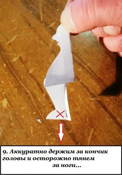 Вырежешь подобного человечка, сложишь правильно, аккуратно держишь за голову и просишь товарища осторожно за ножки потянуть...