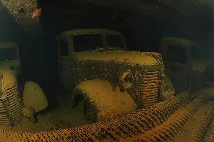 На глубине до 60 м водолазы любуются крейсерами и истребителями, пассажирскими пароходами и грузовыми судами, танками и орудиями. На ржавых палубах выросли целые сказочные леса из губок и кораллов необычных форм и цветов. Лестницы ведут вниз, в грузовые отсеки, которые наполнены частями самолетов, бочками, грузовиками и боеприпасами. Между ними разбросаны противогазы, кухонная посуда и обувь. В машинных отделениях на стенах все еще висят инструменты, но лампочки центрального пункта управления уже давно погасли. Иногда в поле зрения попадают человеческие черепа и кости, напоминая любопытным водолазам о том, что это – кладбище.