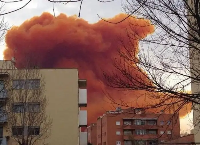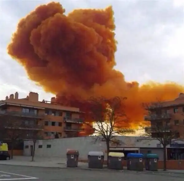 В результате взрыва, который сегодняшним утром произошел в испанском городе Игуалада на химическом заводе компании Simar, пять населенных пунктов Каталонии были окутаны токсичным оранжевым облаком. Взрыв произошел из-за взаимодействия азотной кислоты с хлоридом железа. В результате взрыва пострадали трое работников предприятия, власти рекомендовали жителям оставаться в своих домах и не открывать окна до тех пор, пока облако не рассеется.