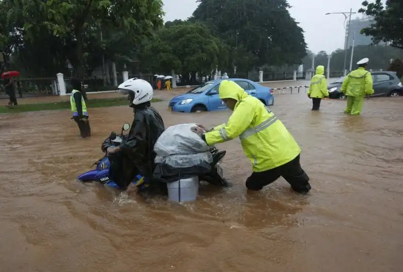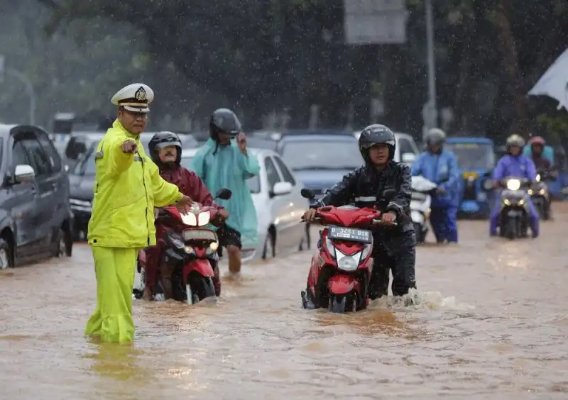 В результате сильных сезонных дождей были затоплены многие улицы Джакарты, что практически парализовало дорожное движение. Эти фотографии были сделаны 9 и 10 февраля 2015 года на разных улицах столицы Индонезии.