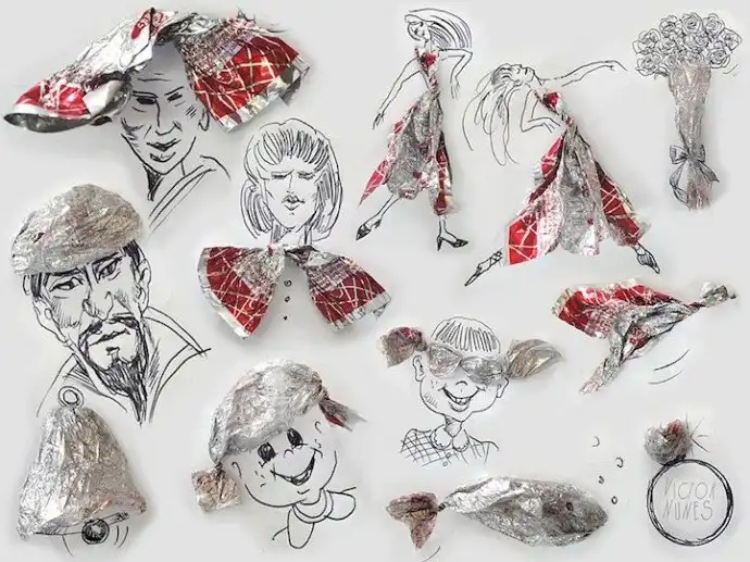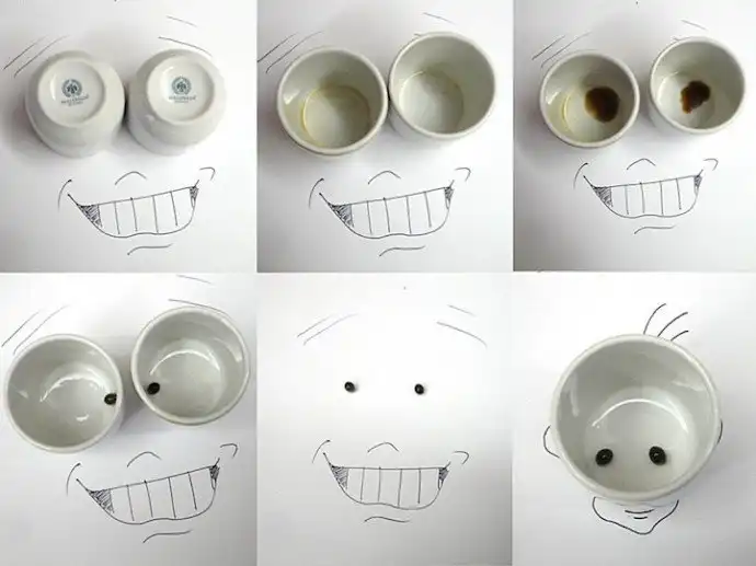 Удивительно, как может измениться обычный рисунок под влиянием творческого воображения! Если на картинку положить в нужном месте предмет (например, ножницы, лист салата или попкорн), то он превращает в нечто оригинальное и необычное!