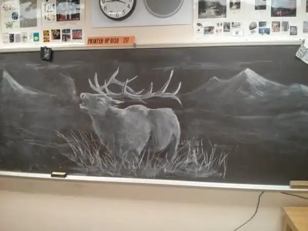 Каждый день школьников в классе рисования ждет новый рисунок на доске. Так учитель и себя развлекает в свободное время, и вдохновляет своих учеников на творчество.