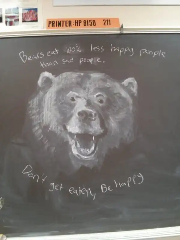 *Медведи едят на 100% меньше счастливых людей, чем грустных. Не дай себе оказаться в его пасти, будь счастлив!
