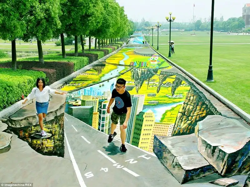 Такие вещи надо смотреть своими глазами, фотография конечно же это замечательно, но в живую всё смотрится с ещё большим интересом и воодушевлением. Правда у нас в России мало подобных изображений, по крайней мере я ни в одном городе страны такого чуда не видел, но, надеюсь кто-нибудь отважится и создаст шедевры и у нас на родине. Итак, давайте же вместе полюбуемся на эти шедевры изобразительного искусства и посмотрим прикольные 3D рисунки на асфальте картинки.