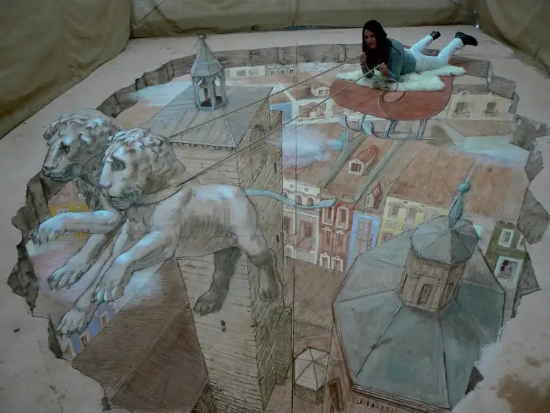 Меня всегда поражали эти необычные, можно сказать волшебные картины, когда на плоской поверхности вдруг появляются абсолютно объёмные сюжеты, это не может оставить равнодушным. Причём эти изображения настолько реалистичны и похожи на действительность, что определённое уважение к мастеру, нарисовавшему это чудо, возникает автоматически.