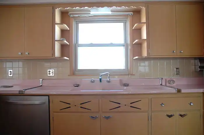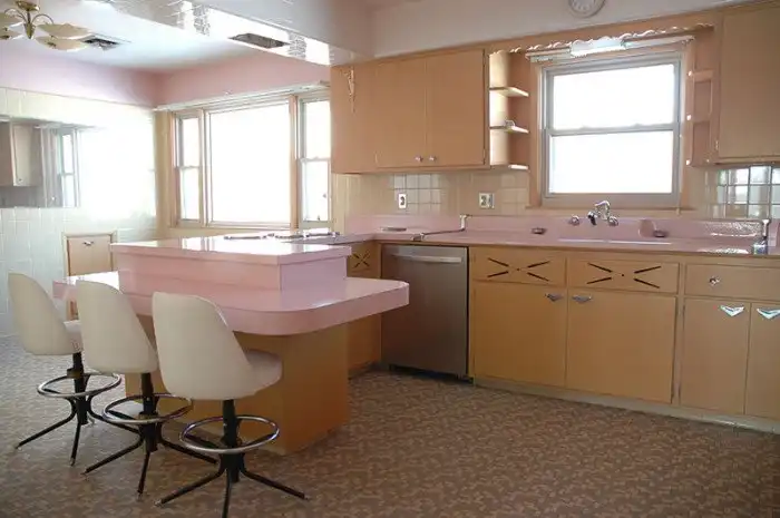 Столешницы выполнены в нежном розовом оттенке