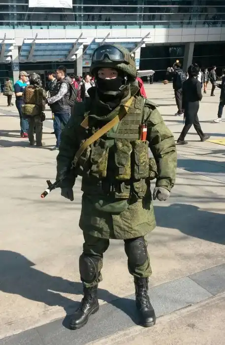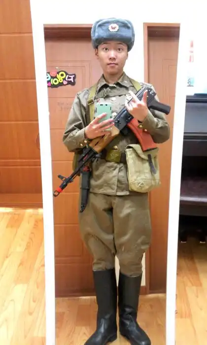Парень, которого вы видите на этих фото, вовсе не российский солдат, а всего лишь 17-летний подросток Рилла Ким из Кореи, имеющий необычное хобби. Дело в том, что этот молодой человек увлекается изготовлением костюмов для косплей-вечеринок. Костюмы этого парня всегда повторяют форму военнослужащих РФ и СССР.