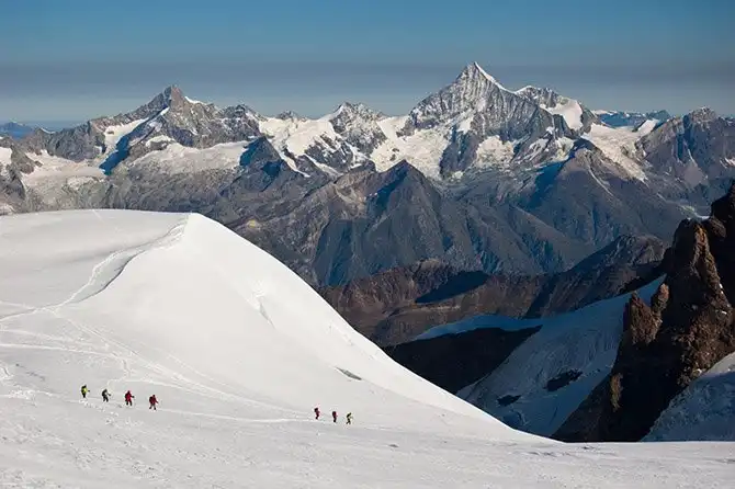 Швейцария. Вале. Горный массив Монте-Роза. Начинающим альпинистам предлагается три классических направления — Поллукс (4 092 м), Брайтхорн (4 164 м) и Кастор (4 228 м). Лучшее время для восхождения — с июня по октябрь. Все маршруты маркированы; имеются специально оборудованные места для ночлега. Базовая программа восхождения рассчитана на 7 дней. (Francesco Sisti)