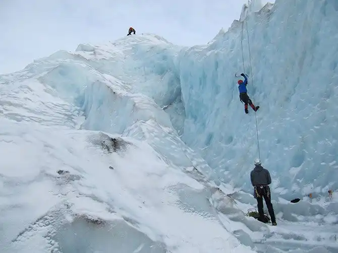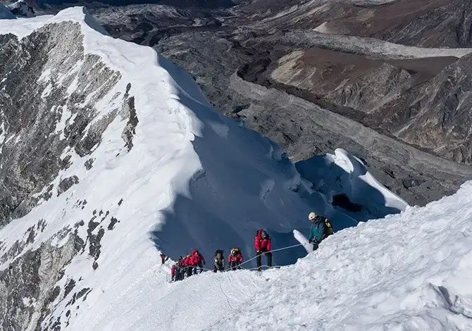 Непал. Айленд-пик. Высота этой гималайской горной вершины составляет 6165 м. Однако, альпинисты, прошедшие базовую подготовку, без особых усилий смогут покорить вершину Айленд-пик. Для этого необходимо иметь навыки хождения в кошках, работы с верёвками. Лучшее время для восхождения — с апреля по май и с октября по ноябрь. (Kiril Rusev)