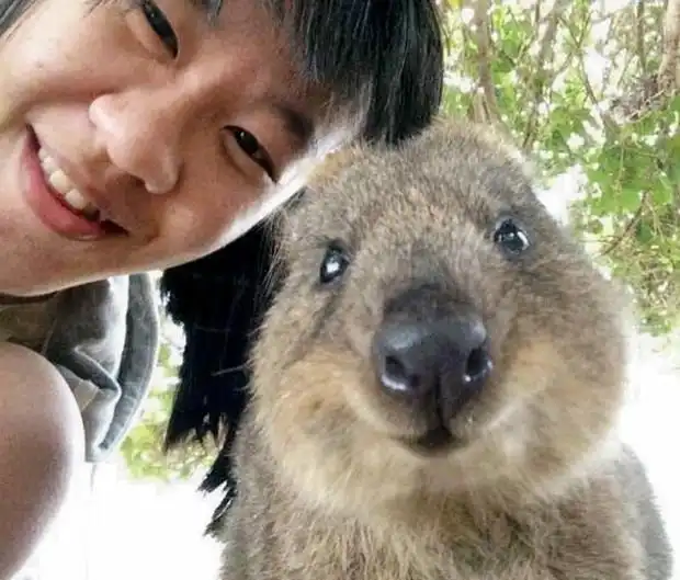 Австралийское сумчатое животное квокка, которое занесено в международную Красную книгу, очень дружелюбно и совершенно не боится людей. Эти очаровательные и всегда счастливые животные любят внимание к своей персоне, а еще они не меньше нас любят селфи.