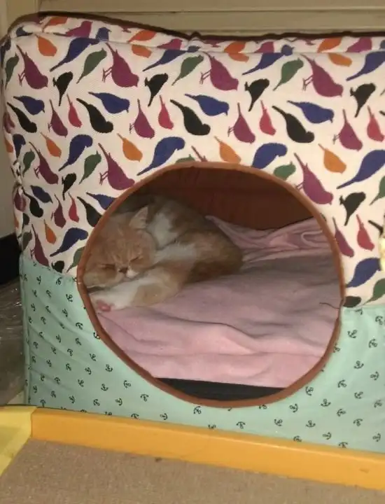 Одна девушка решила достать кота, который не хотел вылезать из своего домика, в итоге из домика пришлось доставать саму хозяйку. В извлечении девушки из кошачьего домика, где компанию ей составлял и сам кот, участвовали брат, вытягивавший ее за ноги, и сестра, державшая тот самый домик. Мать детей в этот момент смеялась и снимала все происходящее на камеру.