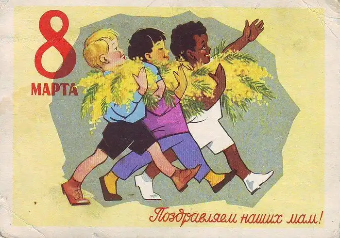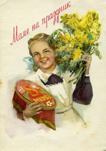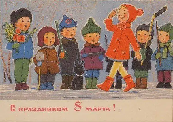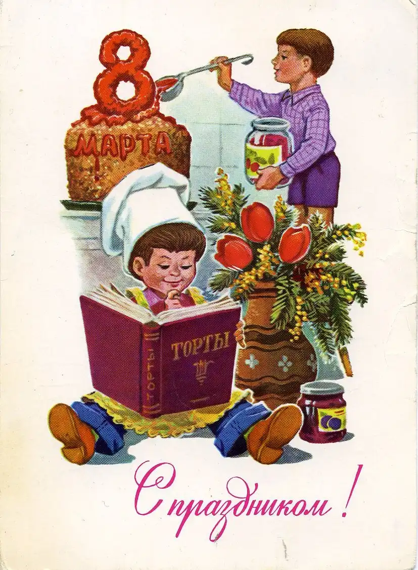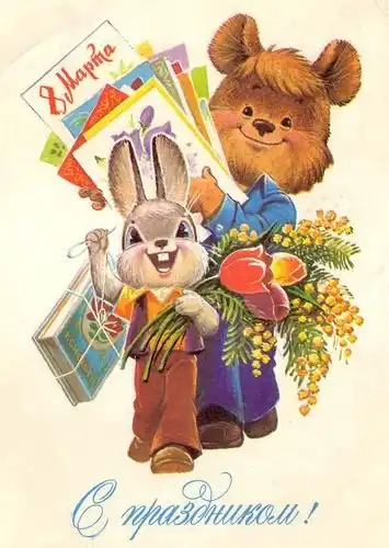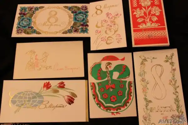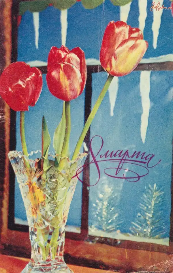 В советские времена,не было такого изобилия цветов и подарков, как сейчас. Мимоза,тюльпаны и гвоздики, были главными цветами 8 марта. Зато было множество поздравительных открыток.