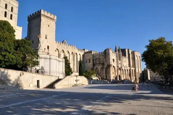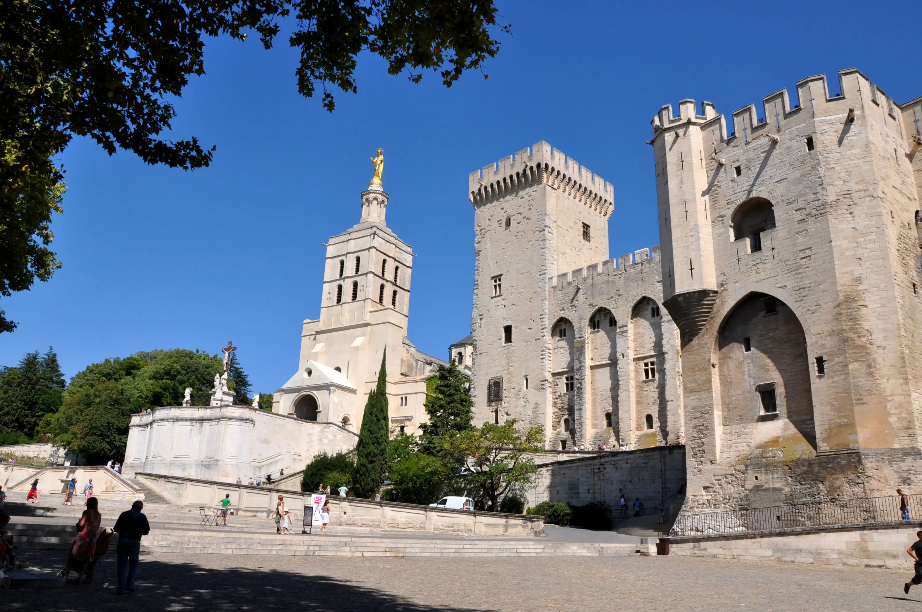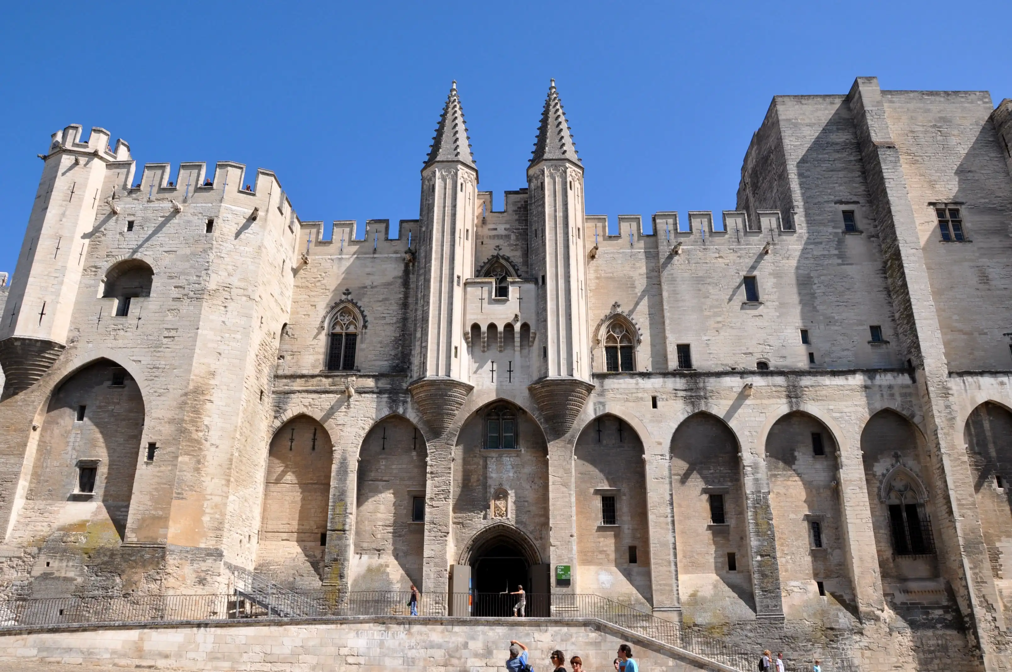 В 1309 году под давлением короля Франции Филиппа IV Папа Римский Клемент V перенёс свое местопребывание в Авиньон. Его резиденция находилась в этом городе до 1376 года. Папы Бенедикт XII (1334-1342) и Клемент VI (1342-1352) перестроили и достроили существующее к тому времени здание, в результате комплекс сооружений стал самой укреплённой и неприступной крепостью тех времён. Говорят, это было сделано для защиты от бродячих банд наёмников. Но такая крепость выдержала бы и многодневную осаду регулярных войск…