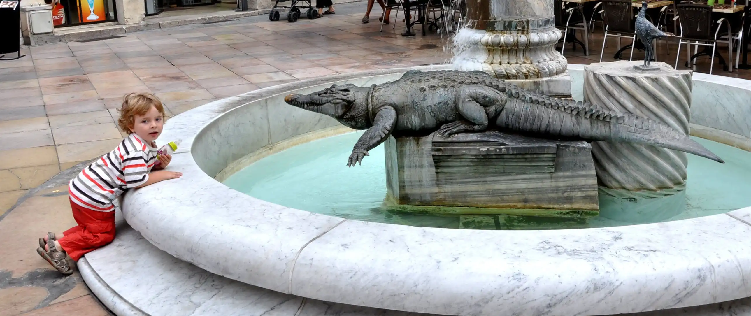 Скульптор Мартьял Рейсе создал на одной из площадей очень красивый фонтан с крокодилом в древнеримском стиле. Дети в восторге…