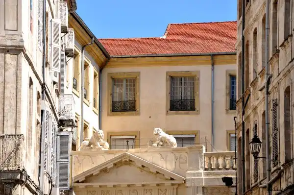 Амфитеатр для проведения гладиаторских боёв и древнеримский храм, датируемый концом I в.до н.э – началом I в. н.э. Храм “Мезон Карре” недавно почистили от черноты времени, и он теперь выглядит как практически сразу после строительства. Степень сохранности делает его уникальным памятником мировой культуры. В амфитеатре с сохранившимися каменными сиденьями на 25 тысяч мест и сейчас проводятся бои быков и исторические реконструкции гладиаторских боёв.