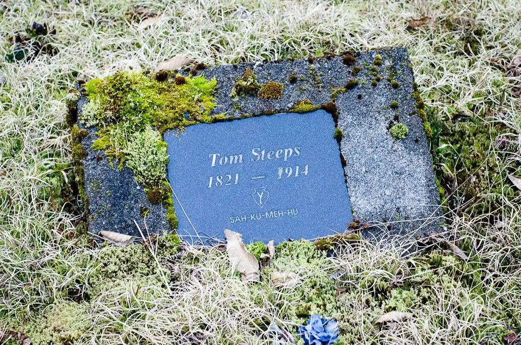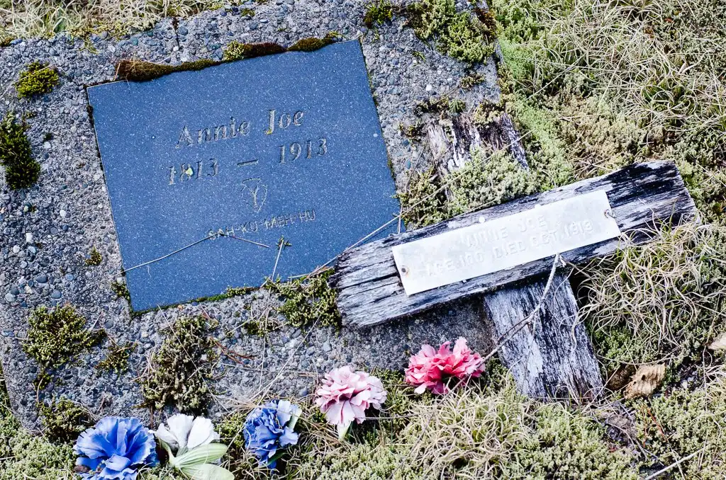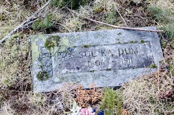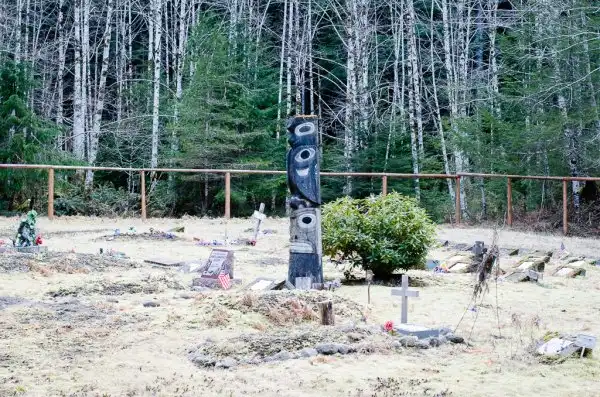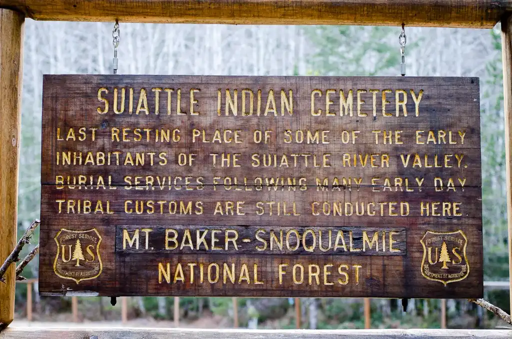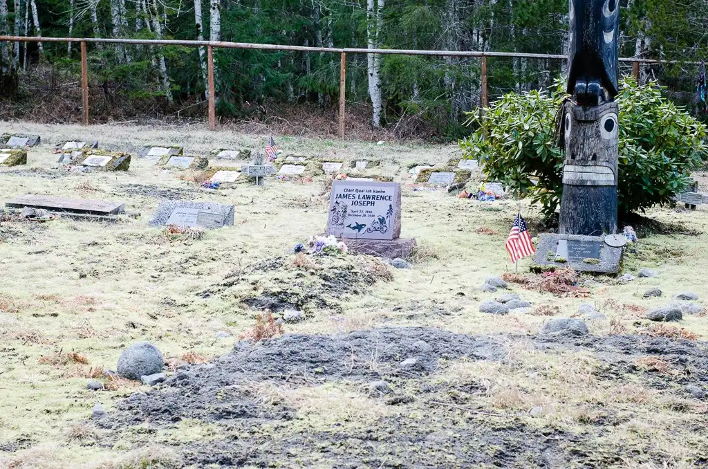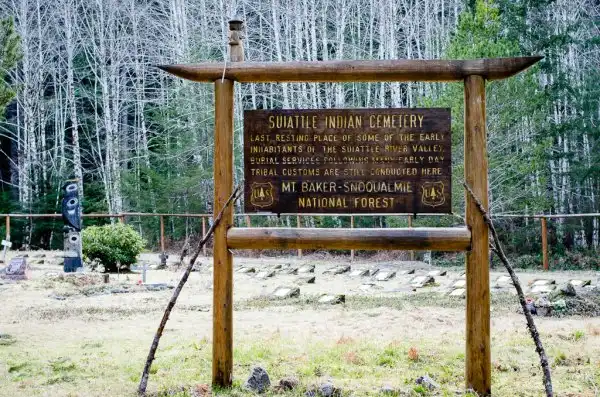 Племя, которое теперь называется Sauk-Suiattle когда-то раньше называлось Sah-Ku-Meh-Hu. Это название легко увидеть на подписях к самым старым могильным камням. Ни дней рождений, иногда нет ни годов, ни имён на старых могилах, просто «Неизвестный». А если есть имена, то только христианские. Эти два ряда могил – могилы самого драматического периода индейской истории, прихода белых поселенцев. Племя, целый народ со своим языком и уникальной культурой, люди, чья страна была все огромные леса у северо-западного подножия гор, их было более 4 тысяч человек. К 1924-ому году из-за болезней и конфликтов из них остались в живых только 18.