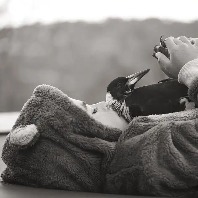Чуть менее двух лет назад в семье Блум появилось новое домашнее животное, которое отличалось от тех, что мы обычно привыкли видеть. Добрые люди решили спасти от смерти птенца сороки, которому на тот момент было всего несколько недель от роду. Птицу забрали к себе домой, и с тех пор она стала еще одним членом большой и дружной семьи. Зовут пернатого друга Пингвином. Ей завели собственную страницу в Instagram, на которую подписаны более 5500 человек, где постоянно публикуют фото счастливой жизни спасенной сороки в семье Блум.